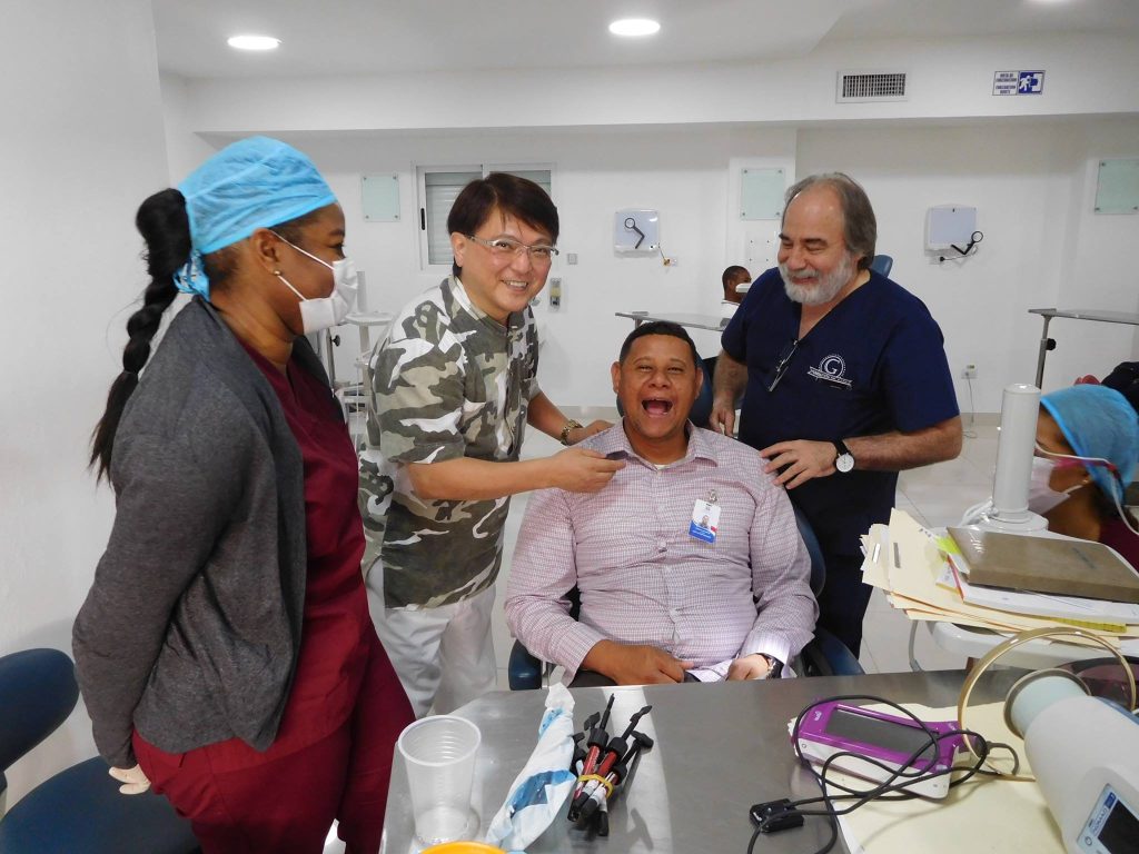 カリブ海のドミニカ共和国では日本とまったく違う環境下で、集まってこられた患者さま相手に1日で10〜20本のサイナースを含めたインプラント埋入を行います。世界中から歯科医師が集まるこの国の研修でも、吉留先生率いる日本のチームは丁寧な手術が好評を得ています。